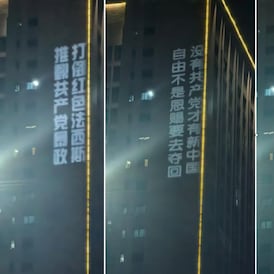 在北京“九三抗战胜利八十周年阅兵”前夕,中国西南重庆出现罕见街头抗议。8月29日晚间约十时,位于重庆大学城核心商业区熙街的一栋高楼外墙,突然打出多条巨幅投影标语,内容直指中共政权,呼吁民众起身反抗。整个投影行动持续五十多分钟.